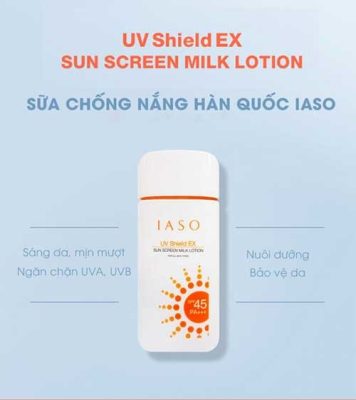Sữa chống nắng Hàn Quốc UV Shield Ex Sunscreen Milk Lotion SPF 45 và PA +++ có kết cấu mỏng, thấm nhanh, phù hợp với nàng da dầu
